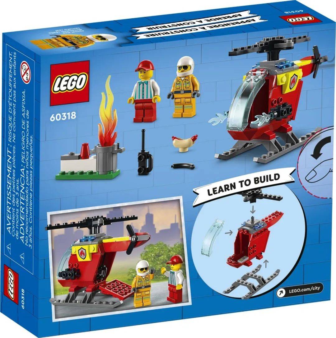 乐高城市60318消防直升机将是一个4岁+套装,因此非常容易拼搭,只由53片零件组成,售价9.99欧元。该套装还包括一个小型快餐摊,有一个燃烧的垃圾桶可供熄灭,还有2个人仔。其中有趣的细节是一个黑色的烧焦热狗。
