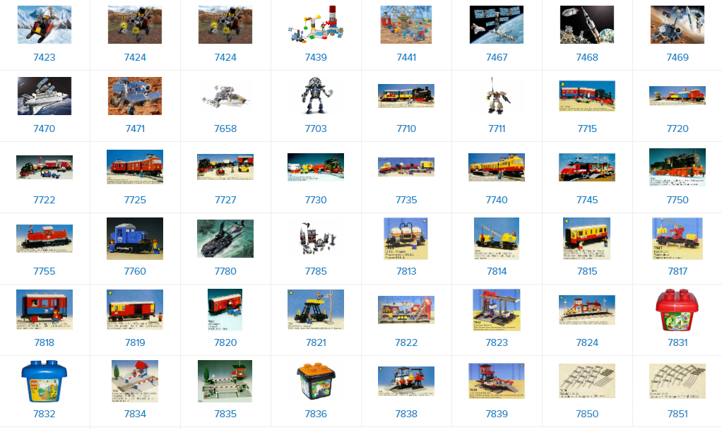 拥有老浅灰色颜色的零件种类高达1860种,自从1954年到2008年,前前后后54年时间里涵盖61个系列的3197(或3190)款套装。