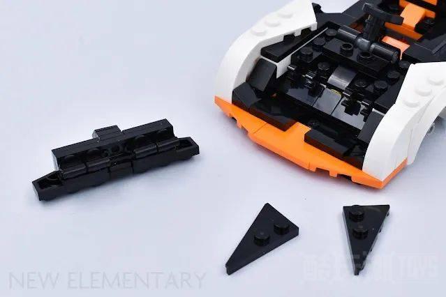 早在2019年的75892迈凯伦Senna中,透明红色的矛尖零件就被当做尾灯使用在车尾,稍后将由新的楔形零件通过夹子固定,整个区域的线条变得很光滑漂亮。