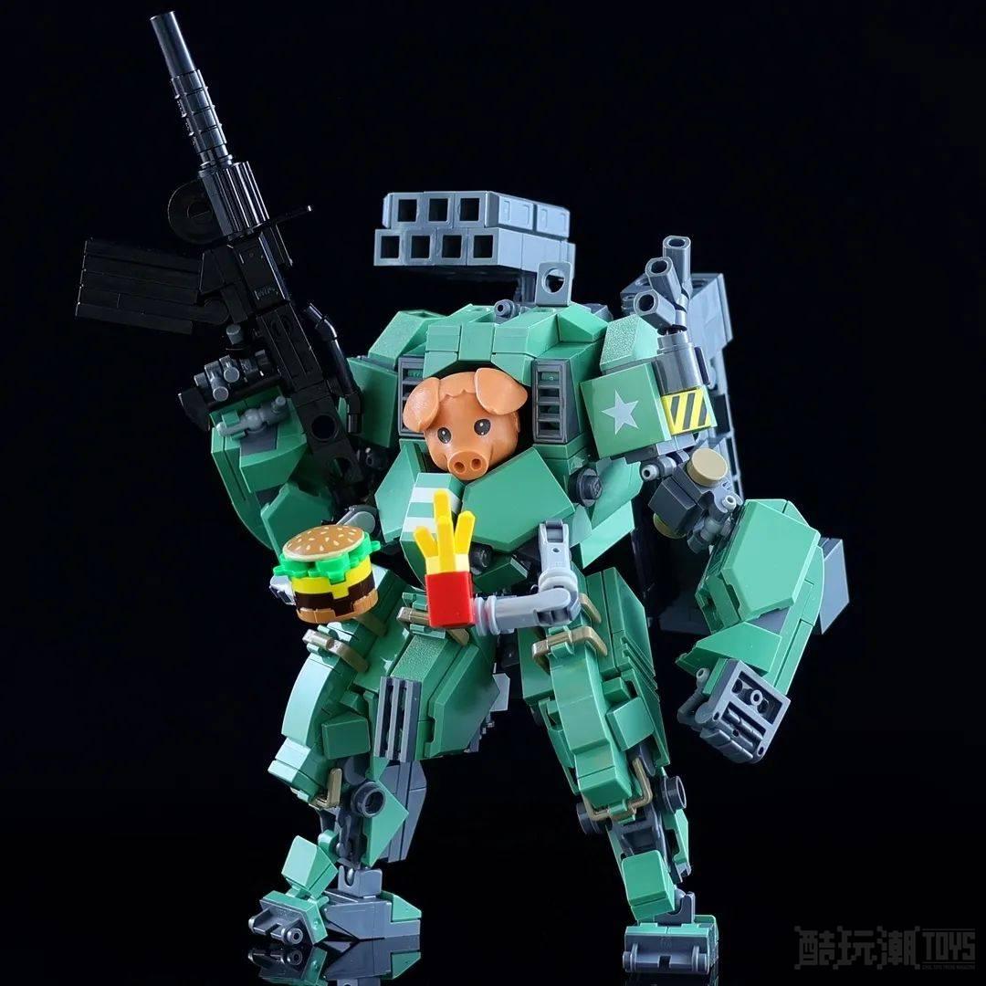 Flickr Builder Moko制作机甲已经有很长一段时间了,在创造了一些乐高动物的机甲版本之后,他们又转向了一些乐高传奇人物。对于不熟悉的人来说,Fabuland套装是在70年代末推出的,在80年代末停产。正如Moko在他的博客中所说,Fabuland提供了一个更“像图画书一样的世界观”,有拟人化的动物公民。虽然这些模型和套装不再由乐高公司生产,但由于它们的稀有性,在一些收藏家中仍有一个核心粉丝群体。 在这里,Moko创造了一个大胃王半机械人士兵。Moko在手臂、腿和身体上使用了大量铰链元素,提供了一个厚实又灵巧的框架来保护里面的骑手。