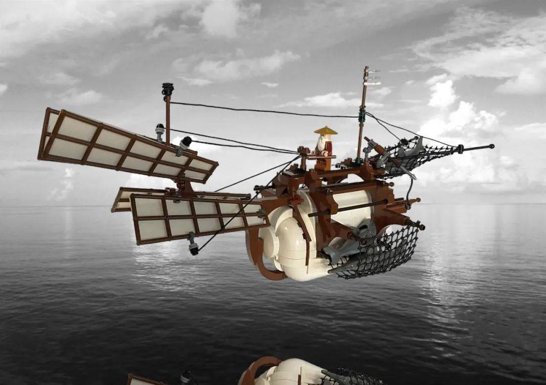 小编看到这个MOC作品,瞬间想到了漂流瓶,这个飞艇造型不仅接近漂流瓶,两者的特性也非常相似,都是在海上漂泊不定,根据海浪的起伏决定前进的方向。