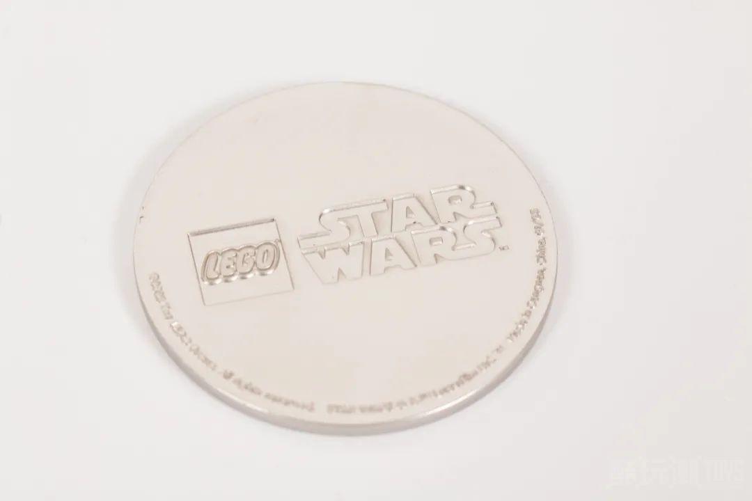 硬币上的死星 II图案在一些角度看起来并不清晰,透明蓝色塑料盖板上同样的设计弥补了这一点缺陷。硬币的背面是乐高星球大战系列的LOGO。