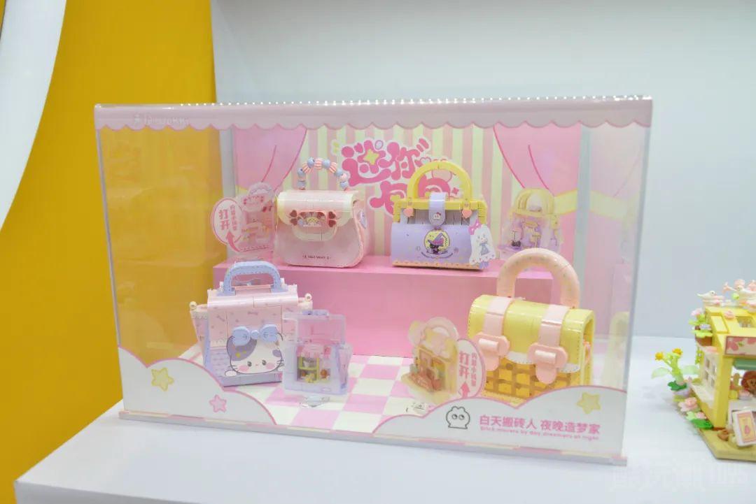 未及积木的展馆布置非常清新,哪怕对积木产品不感兴趣的游客看了都忍不住进去逛逛。除了主打的樱桃小丸子IP产品,未及在这里还展示了自己的童话镇系列和迷你包包系列等产品,现场吸引了不少女性顾客。