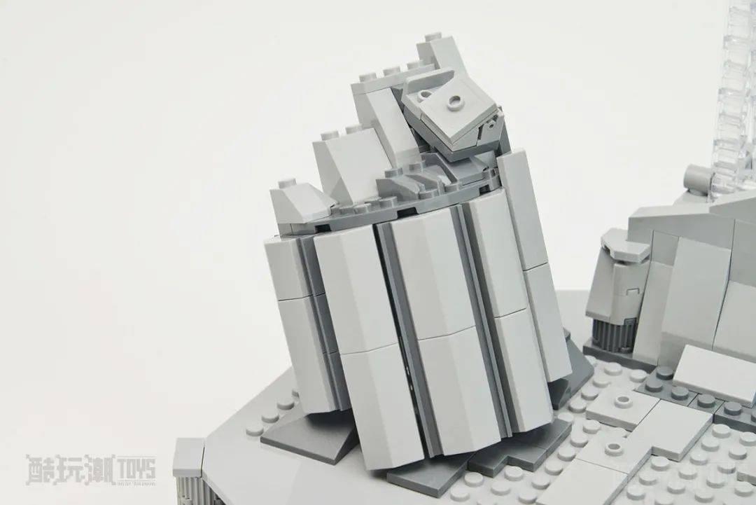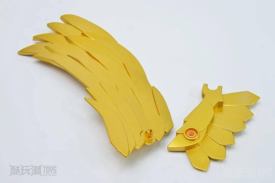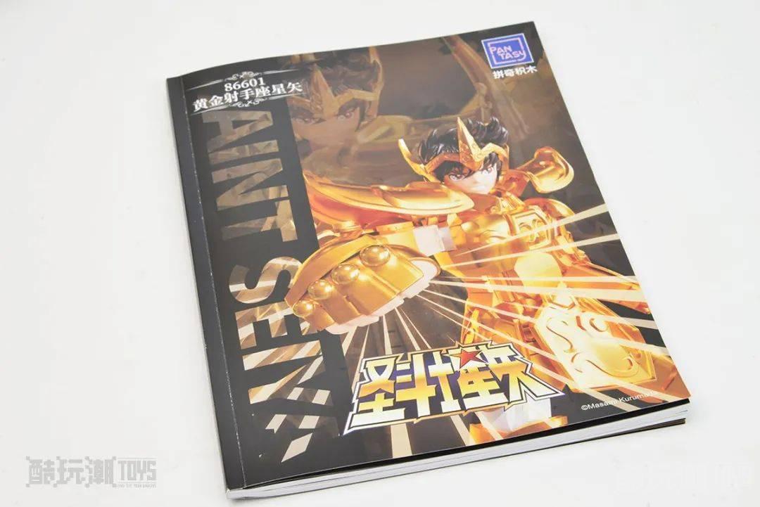包装和内容拼奇的首款圣斗士星矢系列产品的选题很不错,直接将动漫中最让人兴奋的黄金圣衣搬到我们眼前,这同样也是手办、模型等选得最多的造型之一。套装包装主体是黄金射手座星矢拼装完成后的展示造型,是星矢在黄金圣衣的加持下张开弓箭战斗的场景。成品包含底座与黄金射手座星矢两个部分,单看星矢身上的黄金圣衣,全部都由金色零件组成,非常耀眼,而且大部分都是独立开模的零件,完全打消了我起初对套装在细节还原度上的疑虑。包装背面展示了星矢的另一种展示造型:“天马流星拳”,以“天火钟”作为背景,上面罗列着黄金射手座星矢的可替换头雕、黄金翅膀、黄金铠甲等细节,另外下方三幅标注着不同展示造型状态下的套装成品尺寸图,最高能达到47厘米。包装上给出的黄金射手座星矢的三种不同展示造型都很帅,结合底座展示台更是能将套装的可动关节最大程度地利用起来。下面就让我们开箱看下吧!圣斗士星矢包装采用天地盖的开合方式,这是与之前不一样的。内部的盒子上还有黄金射手座星矢与弓箭的黑白照片。将它们全部打开,这过程仿佛就像是在开海盗宝箱一样,满满的金色零件,包含金色零件的零件包共有11包。另外还有一个用泡模封装好的弓箭,箭大概有27厘米。另外一个盒子中装有底座零件,也是独立开模的,非常大。说明书前几页介绍了有关我们儿时经典的圣斗士星矢,而且还曝光了早期圣斗士星矢的设计草图,文字部分大概内容是,用积木造的圣斗士星矢在细节与还原度上无法达到预期,故选择独立开模的零件,也有说明他们做出如此非常规的产品形态,能否被市场认可?是否值得投入大量的人力物力去突破积木产品边界?最终拼奇决定使用独立开模的零件,并不断调整其颜色与细节,终于达到预期。拼奇的这场豪赌最终市场的反馈如何,不是小编一人说了算的,那就由时间考量吧!开始拼搭首先拼搭的是底座部分,两块底座零件严丝合缝地组成了基底,呈现出八角形的结构,并带有层次感,省去了我们许多拼搭时间。底板零件上带有“PQ”的字母标识,对于拼奇这款投入巨多的套装来说,是十分有必要的,毕竟目前也有抄袭拼奇套装的盗版厂商,防伪工作刻不容缓。基台上印刷着十二宫中的第九宫射手座的三种不同姿态,很细节,丰富了底座的造型。拼搭在基台上的砖块并不多,几个带单凸点的2×2砖块为后期圣斗士星矢提供站立时的落脚点。底座上除了自带的射手座印刷外,还拼搭上两件印刷着“圣斗士星矢”和“Masami Kurumada”(车田正美)的砖块,分别拼搭在底座的前后两面,有趣的是这俩印刷件都被带粘性的塑料纸包裹住,能有效减少运输时而造成划痕的概率。下面拼搭的是两个战损版的希腊石柱,上面也有为圣斗士星矢提供落脚点的带凸点的2×2砖块。底座的最后拼搭的是圣斗士星矢的支架,底部由与底座相同颜色的机械零件构成,而上方长长的支架在拼搭时使用了许多透明件,效果很不错,旨在最终成品展示时降低支架所带来的视觉影响。底座的拼搭十分迅速,这得益于独立楷模的两件底座零件。造型上还原了战斗时的打斗场景,不过套装最重要的圣斗士星矢还没有出现,底座还略显空旷,下面就让我们接着拼吧!拼搭星矢的身体部分便用了超多的金色零件,另外还有两件独立开模的胸甲。凸起的螺柱上印有“PQ”的字母纹样,同样在零件背面也有,还外加零件的编号,复刻的难度大大增加。身体的拼搭由常规颜色零件起形,后面便是轮到金色零件出马了,下方的六个抓手零件同样是金色的,不得不说独立开模的胸甲无论是细节还是造型都是用常规积木零件无法做到的。下面是手臂部分,大部分还都是由金色零件组成,只有在大臂的上半部分使用了肉色砖块,也完全是为了还原动漫中穿着黄金圣衣的星矢造型。这样的设计反而让我有一种因为常规零件的稀少而产生不舍的感觉。手臂采用球形关节进行连接,而大臂与小臂之间则采用带有阻尼效果的铰链连接,固定弯曲的效果很好,可弯折的角度也能达到90°,另外肘关节的护甲也可旋转。两块独立开模的大号肩甲内部有球形关节连接点,与身体的连接则是抓手与手柄的组合,可动性也很强。小腿部分与身体的拼搭很相似,内部是常规零件构成的素体造型,外面则简单粗暴地用独立开模零件包裹。大腿处使用的零件“较少”,大部分为白色零件构成外衣的造型,但也有用到独立开模零件。脚部就更加简单粗暴了,除了与小腿连接的关节处使用了常规的金色零件外,全部由开模零件构成,尖尖的鞋头,外侧的小翅膀,带花纹的鞋舌零件组成的脚部非常漂亮。将它们组装好,整体腿部就完成了。还有两点没有提到,膝甲零件对于腿部造型来说是个很好的补充,可动性也很强,腿与身体采用铰链零件连接,旋转所带来的阻尼效果还不错。把腿部连接在身体上,给人一种脖子以下都是腿的感觉。圣斗士星矢的拼搭很快,很快我们就来到拼搭的最后一个编号零件包,下面展示的则是这包零件颇具代表性的零件,皆是独立包装的,发箍零件更是用泡模保护。首先是十二宫星座守护神中唯一带有翅膀的射手座,翅膀零件重量感十足,上满的纹样以及带有一定弯折角度的细节有一种超值的感觉,四件群甲上的纹样,细节十分丰富。可替换的面部表情与手掌,同手办质感的头发,都很不错。意想不到的是翅膀由两部分组