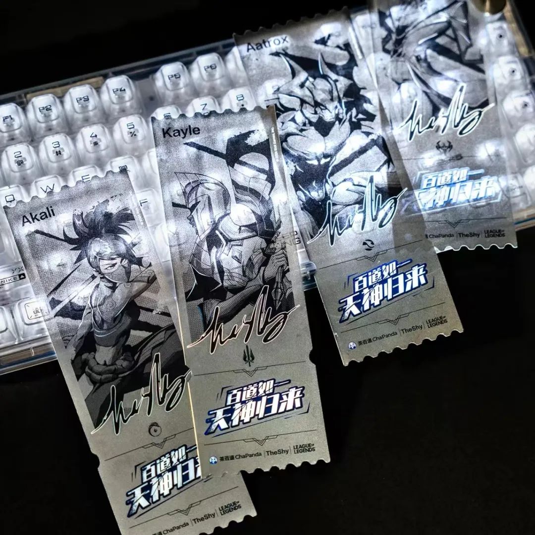 另外,还推出了周边产品“天神归来”明信片套装,内含 2 张;以及共 4 张的“英雄能量” 票根书签套装,4 张票根书签全部选用冷烫镭射银款式,加以镂空透光设计,英雄之高光时刻将随角度转换间跃然眼前!