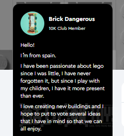 和大多数玩家一样,他喜欢用乐高积木创造新的作品,并在三年前加入了IDEAS社区开启了自己的投稿之旅,希望把心中的所有想法通过乐高积木实现出来,让所有人都能享受到。如果你还记得之前的万票作品海洋生物、旅行箱、魔法书挡,这些优秀的moc都是出自Brick Dangerous之手。