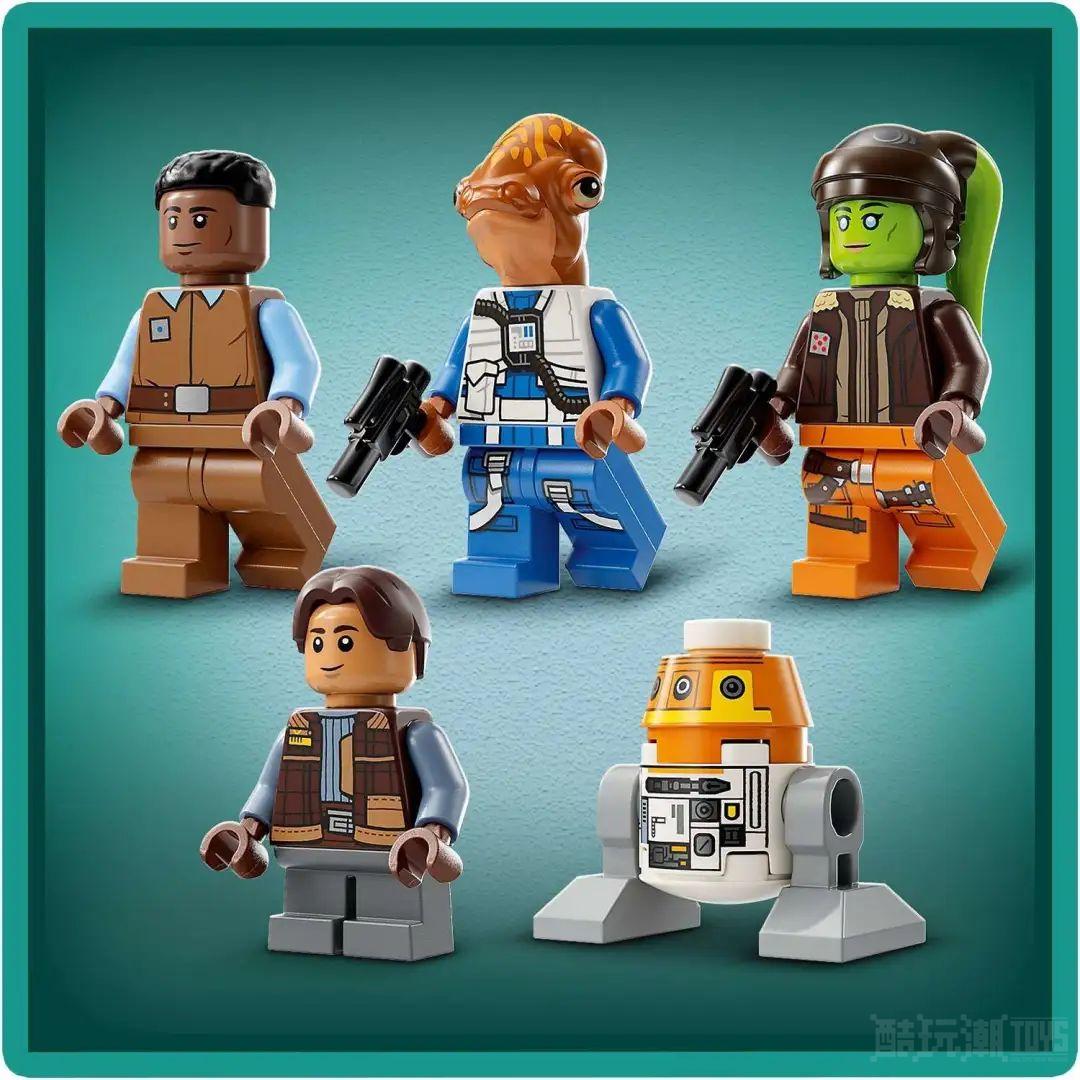 亮点无疑是飞行员Hera Syndulla,她有绿色的Lekku,以及她的机器人Chopper(C1-10P),它使用短小的星形机械腿。首次在乐高套装中亮相的是大副霍金斯(左上),穿着飞行员服的蒙卡拉马利人贝塔中尉(中上)和杰肯·辛杜拉(左下)。