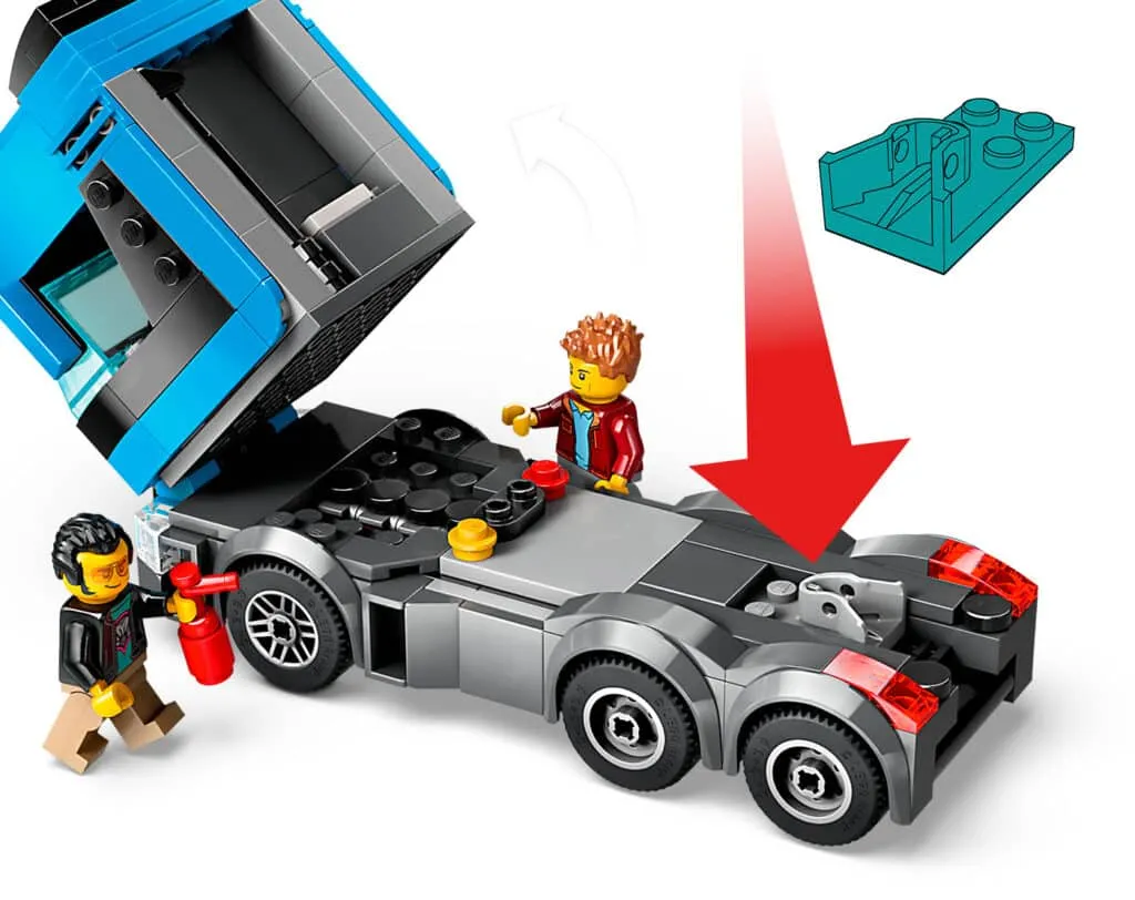 汽车运输车中还配备了六个黑色的1×5支架(编号5712),但这些支架在完成的模型中被巧妙地隐藏起来,你需要查看组装说明才能注意到它们。