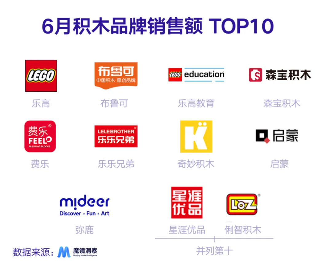 此外,本月积木品牌销售额排行榜TOP10变动显著。
