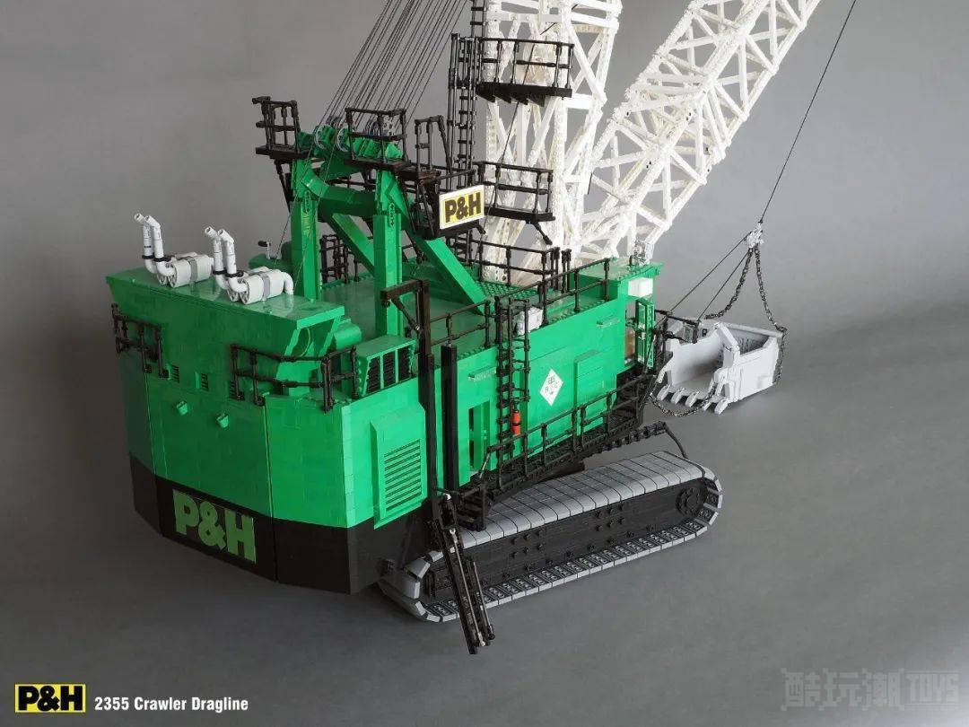对于小型的乐高建筑,往往需要独具匠心的创造才能让人印象深刻。Beat Felber创作的这台P&H 2355拖式挖掘机的近6英尺长,包括9个电机。这东西很大,原型的吊杆长度达到了48.7米,按照Beat的1:28.5的比例,模型应该在1.7米左右。