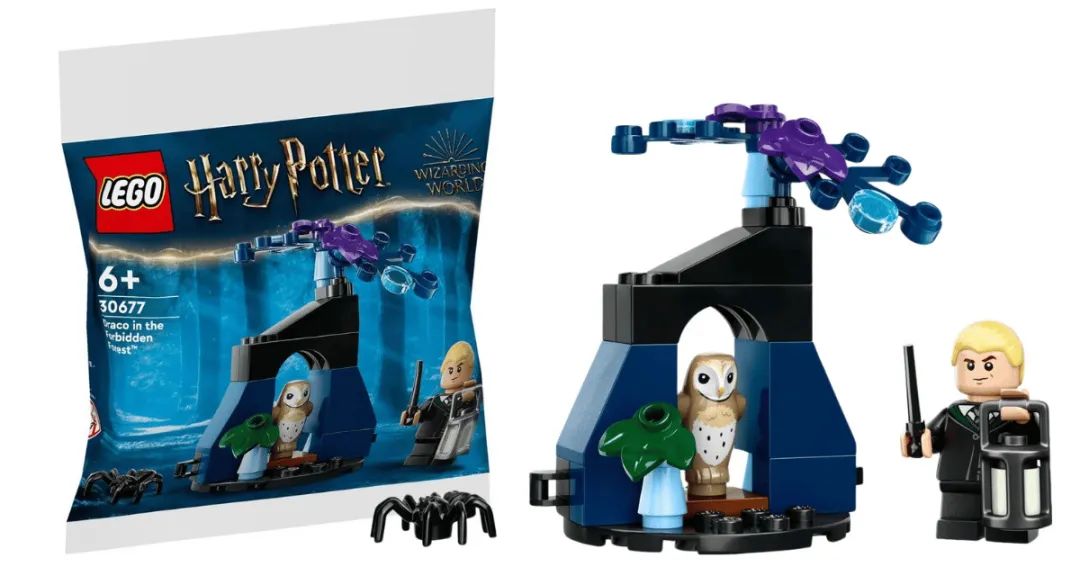 30677 德拉科禁林之旅套装包含了德拉科·马尔福的人仔,以及他的灯笼和一只猫头鹰以及蜘蛛人仔,这些都被设置在禁林的迷你场景中。值得一提的是,这是唯一一款非LEGO Insider会员也能够获得的套装。
