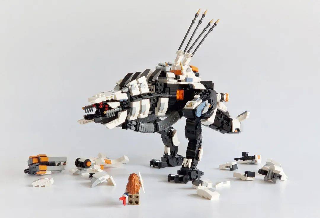 《地平线》是一款第三人称动作角色扮演系列游戏,此游戏主要围绕这样一个故事展开,在遥远的未来,人类文明已经结束,被损毁的星球正在重建,人类并不是最优种群,高度发达的智能机械兽稳坐食物链的顶端,玩家在游戏中扮演一个被部落抛弃的年轻人埃洛伊,为了解开围绕在她身边的一些神秘事件,从而踏上了冒险征程。乐高玩家Michał Kozłowski制作了一个以游戏角色闪电颚为原型的moc作品,一起来看看吧!