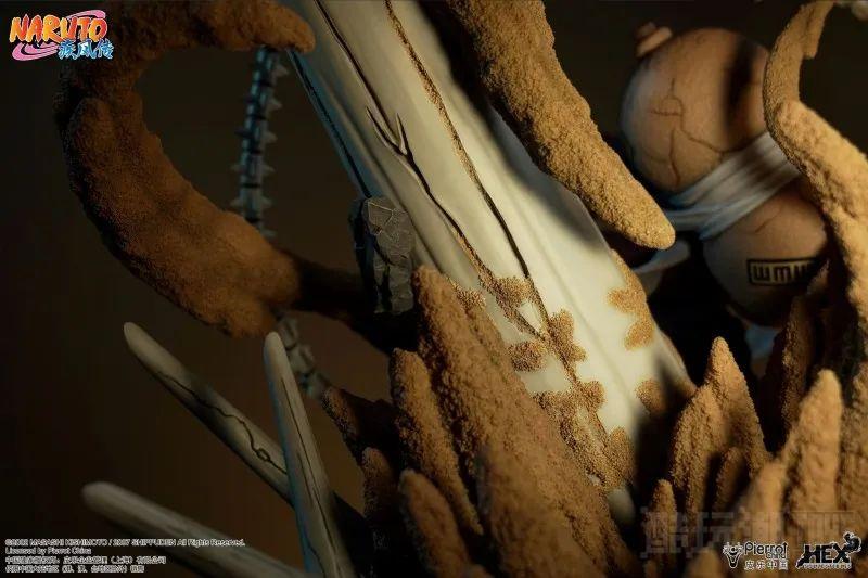 HEX Collectibles“Elite Dynamic Statue 我爱罗vs君麻吕”1/6比例场景雕像,重现我爱罗操纵沙子抵御君麻吕攻击的场面。我爱罗退去原本冷血残酷的模样,以坚定且成熟的神态回归救援,刻划出立足于砂瀑之中的帅气身影!从背后巨大葫芦涌现而出的沙子逼真地呈现出颗粒感与粗糙质感,与君麻吕比钢铁还坚硬的骨骼交缠。