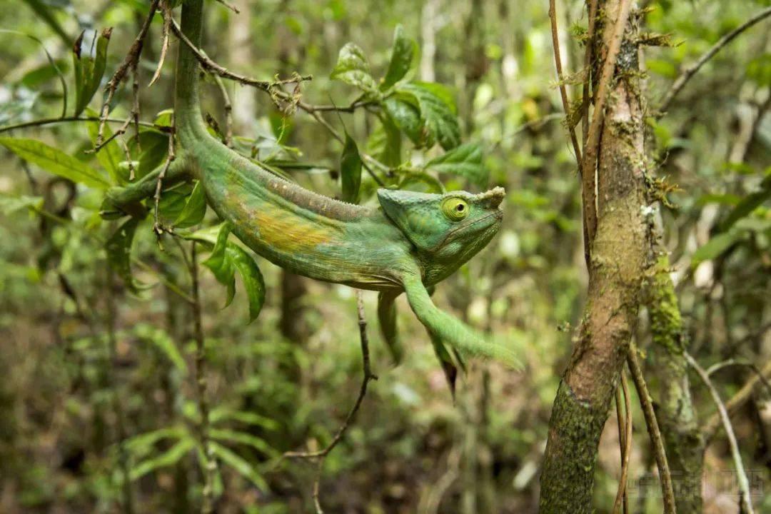 变色龙适合攀爬和视觉狩猎。当它们在树冠的树枝上移动或休息时,使用可抓握的尾巴提供了稳定性;正因为如此,它们的尾巴通常被称为“第五肢”。树栖的另一个有利特征是它们的身体横向压缩程度。