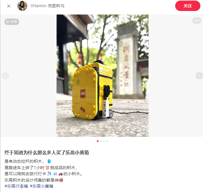 火爆全网的乐高黄色小行李箱!你 GET 了吗?打开展示都刚刚好,还能给你的乐高大人仔当拍照搭子~