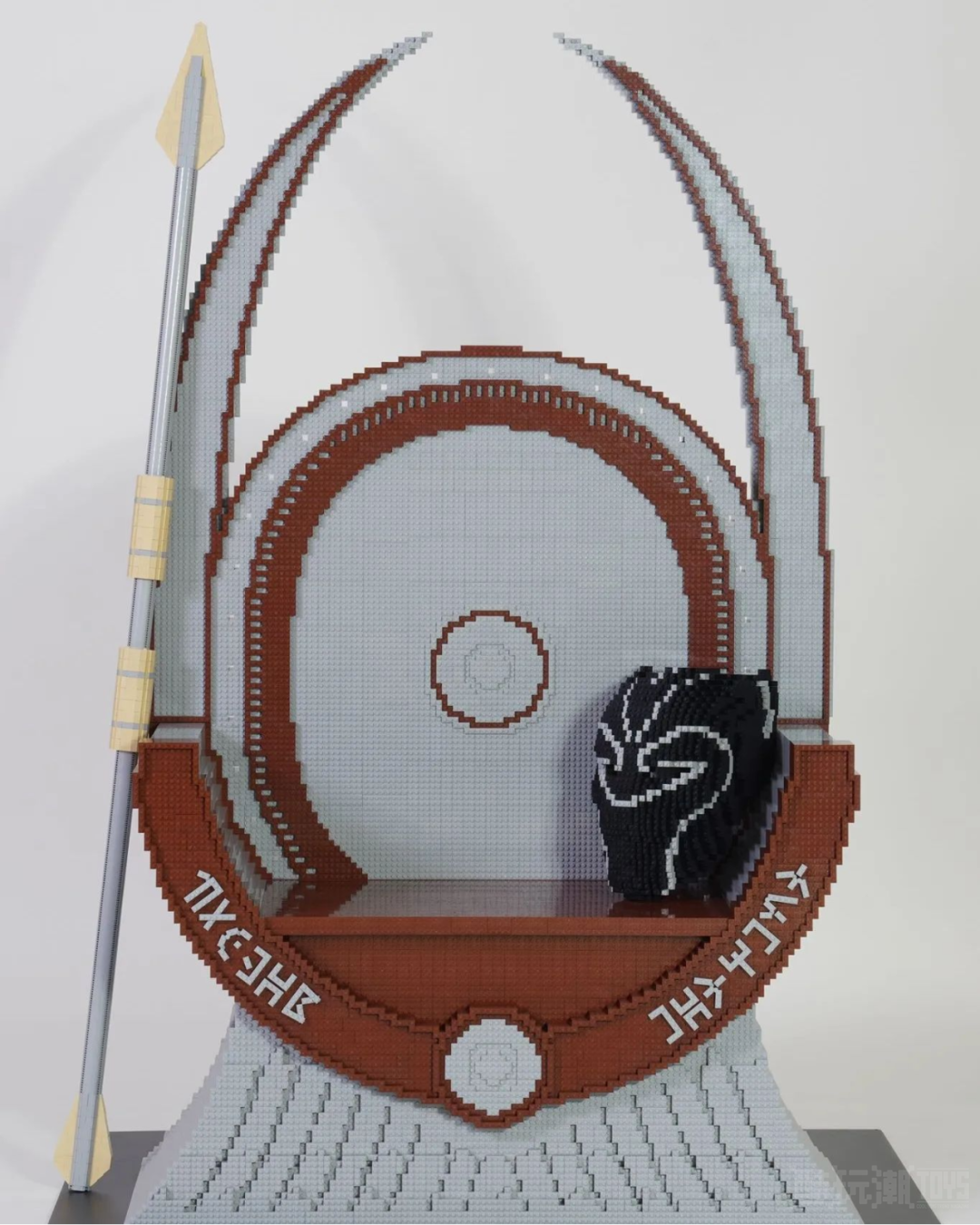 根据乐高集团意大利分公司的介绍,这个作品包含一个长矛、一个国王宝座和一个黑豹的头盔。头盔的尺寸和乐高76215 黑豹套装差不多,并且采用了复杂的拼搭方法进行组合,更准确的描绘了漫威超级英雄黑豹的标志性外观。