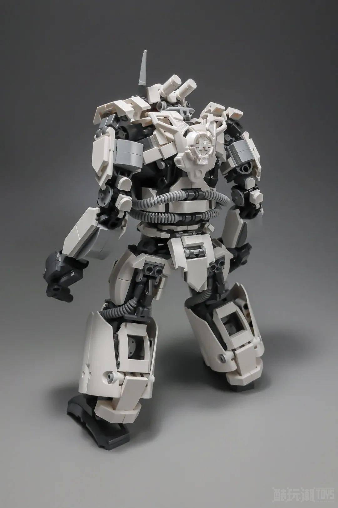 才华横溢的Mitsuru Nikaido制作了一个奇妙的机械模型。这个机甲大部分是以单色风格呈现的,例外的是眼睛和手枪处的一点颜色。一个宽大的爪子代表了头部,它的位置允许一个红色的轴作为眼睛的方便位置。在肩部,盾牌片被连接到模型上,有角度的砖块被放在上面。手指有一个人形的外观,由两端的圆形尖端传达出来。这个机甲配备了一个看起来很强大的爆破器,可以证明它是一个相当麻烦的对手。