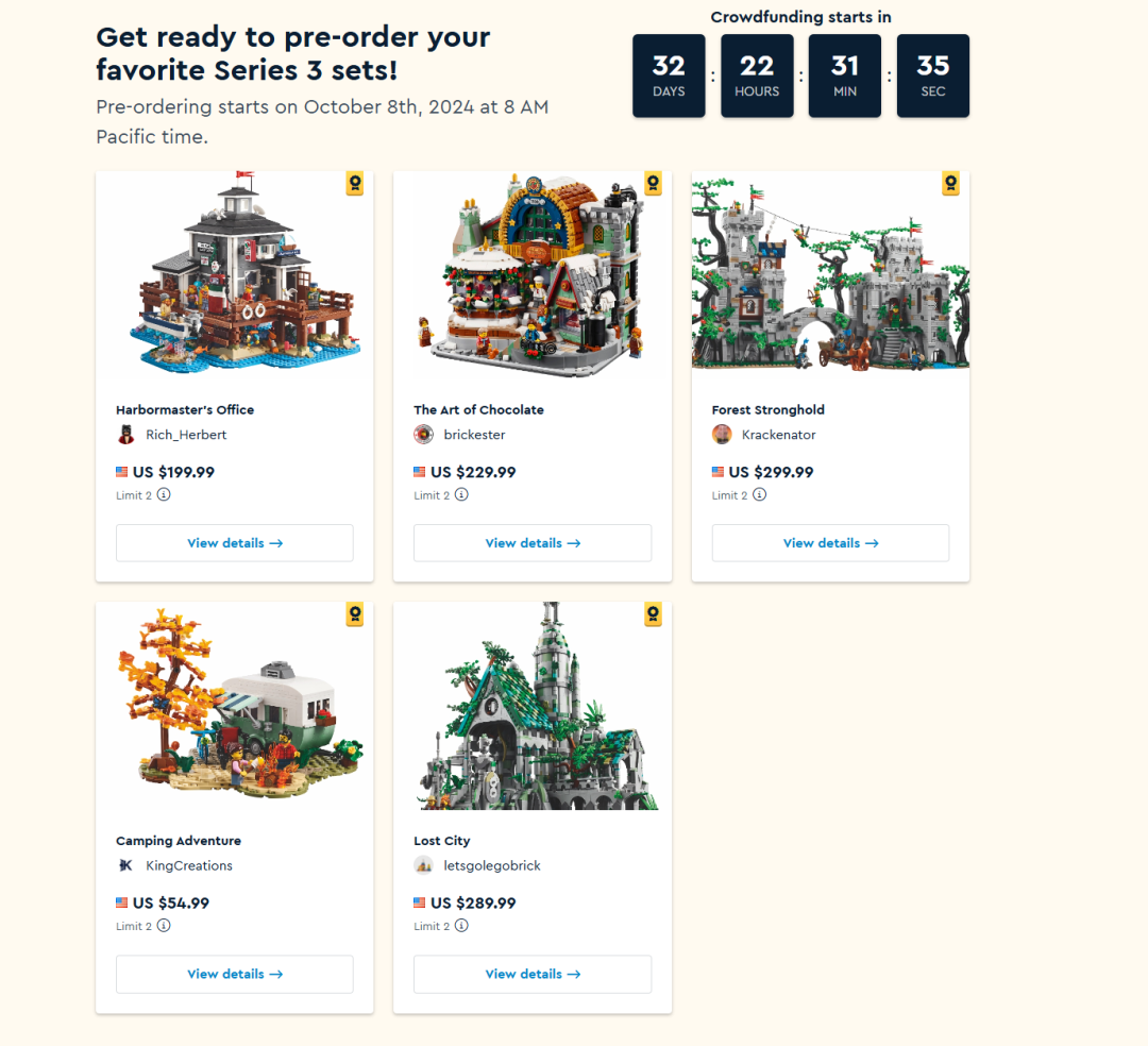 BrickLink 设计师计划第三赛季的众筹将于10月8日上午8点(太平洋时间)正式启动。