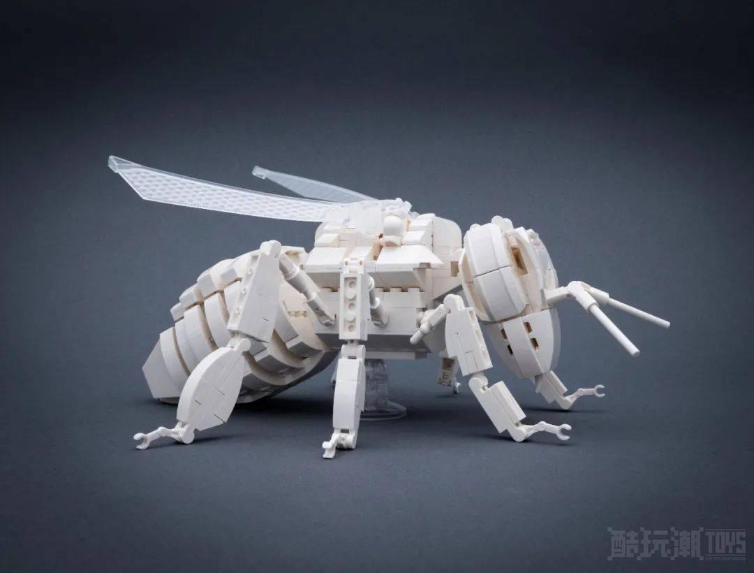 Christian Lintan的这个乐高作品White bee让人有眼前一亮的感觉,毕竟白色的蜜蜂可不多见。这个作品整体的形态非常还原真实的蜜蜂,尤其是搓手的动作,仿佛一只真的蜜蜂出现在你眼前。最引人注意的还是它的一对透明翅膀,好像真的可以飞起来,非常漂亮。