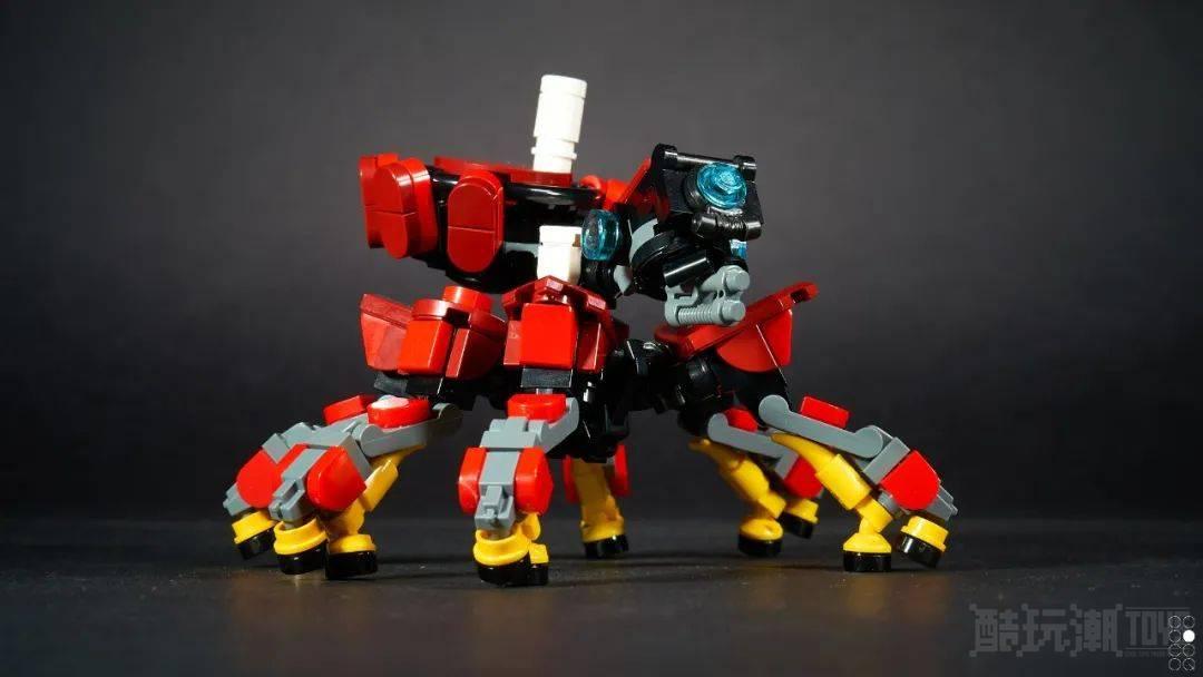 Cole Blaq的新作Red J在脚部显示了乐高武器的多功能性,以及它们的各种连接点,在这里为脚部增加了一个真正的机械外观。腿部下方的角,它暗示着一种液压运动,模仿自然的螃蟹式爬行,来达到穿越地形的目的!