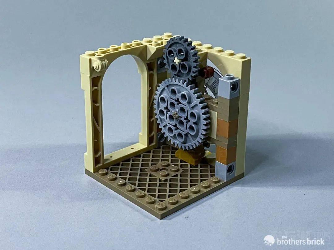 拼搭的最后一部分集中在钟楼结构。 这里的风格与2019年的小版本有些吻合,但旋转时钟的机制不同。这里应该是为了更好地与电影版相匹配,但比例缩小之后总会有所取舍。
