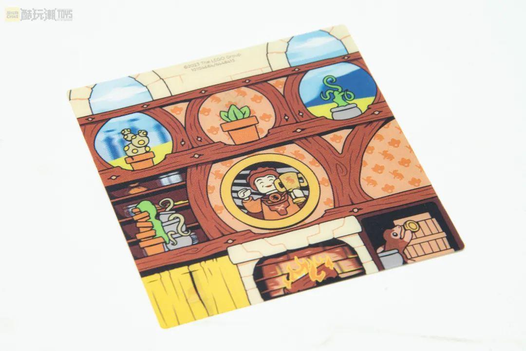 一张正方形3D透镜背板,分上中下三层不同的图案。说是3D透镜背板,其实就像小编小时候上学用的格尺上,那种可以根据视线的不同角度,变幻出不一样的图案。这个东西我也不知道应该叫什么名字,只能跟着乐高官方的介绍,也叫3D透镜背板了。