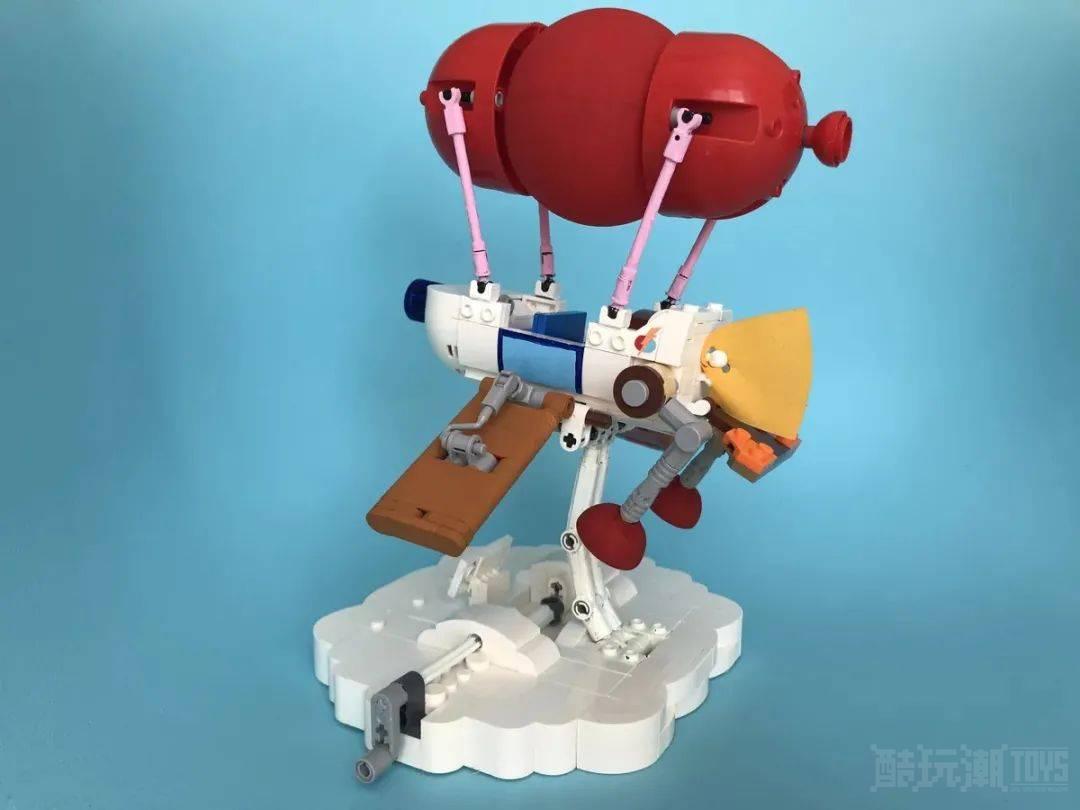 Alex在这件作品中将展示和玩法功能相融合,他先拼了一个云状底座,然后在其上展示着飞机,这里的亮点是你可以用曲柄将飞机运动起来。
