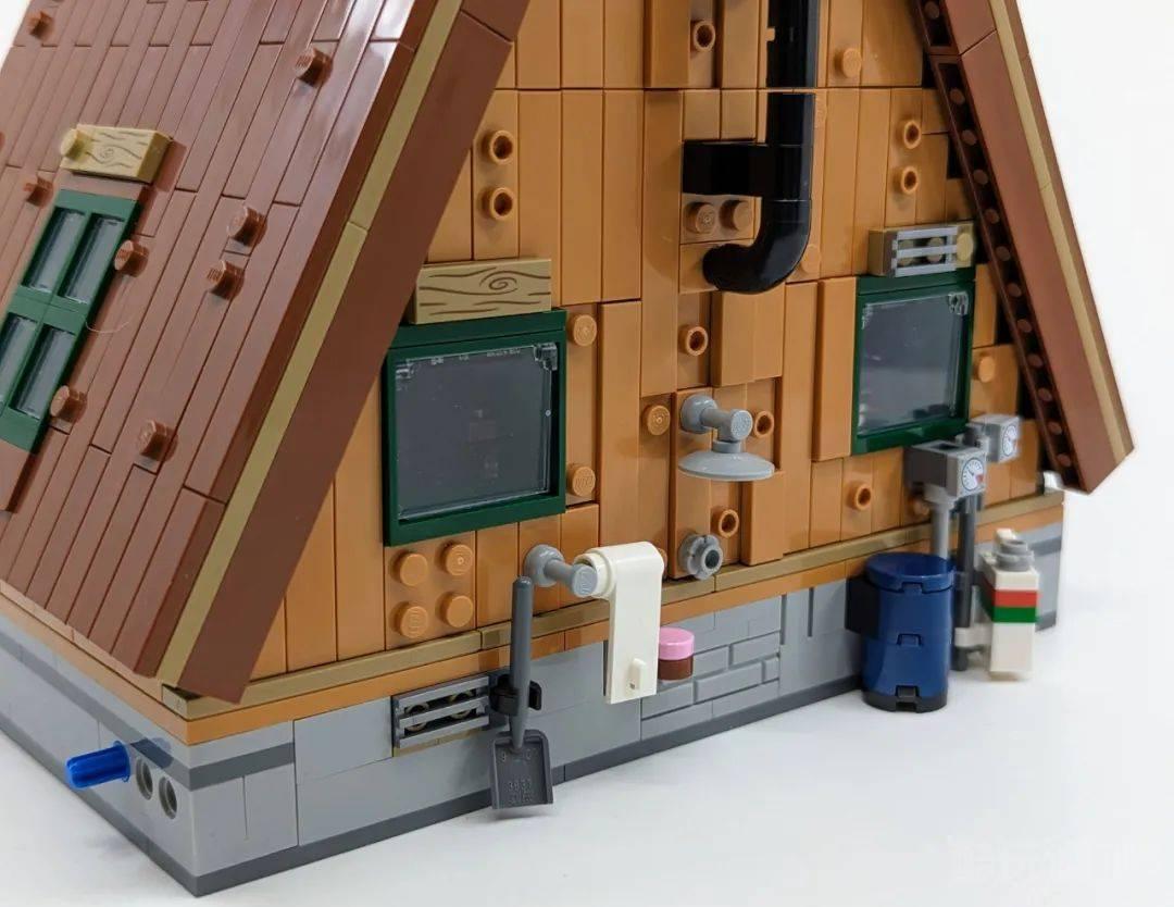 众所周知,几乎所有的乐高®Ideas套装都会受到IP主题的启发去设计。但A形木屋这个作品的量产确实让人眼前一亮,它由乐高®Ideas粉丝设计师Andrea Lattanzio设计,不过量产的套装和原作还是做了一些修改。最明显的就是木屋两侧的大树,而且木屋的尺寸也相对较小,但是并没有牺牲任何细节。