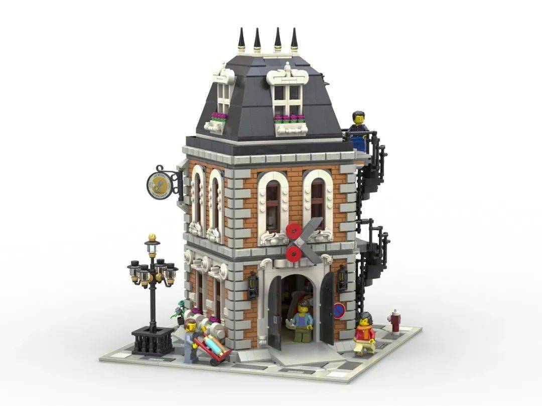 这座建筑是基于19世纪欧洲风格,房顶可以移除以看到内部结构,作品还包括了六个人仔。