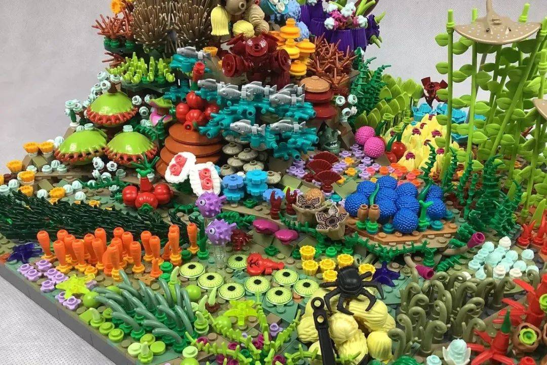 在选题时,Pawel最初是有过思考的,他发现还原图形在Ideas中是最成功的,所以才有了设计一个向自然致敬的思路,一个巨大的色彩缤纷的珊瑚礁。Pawel在64×48螺柱的面积上用积木建造了这个水下景观,粗略估计大约投入了2500个零件。