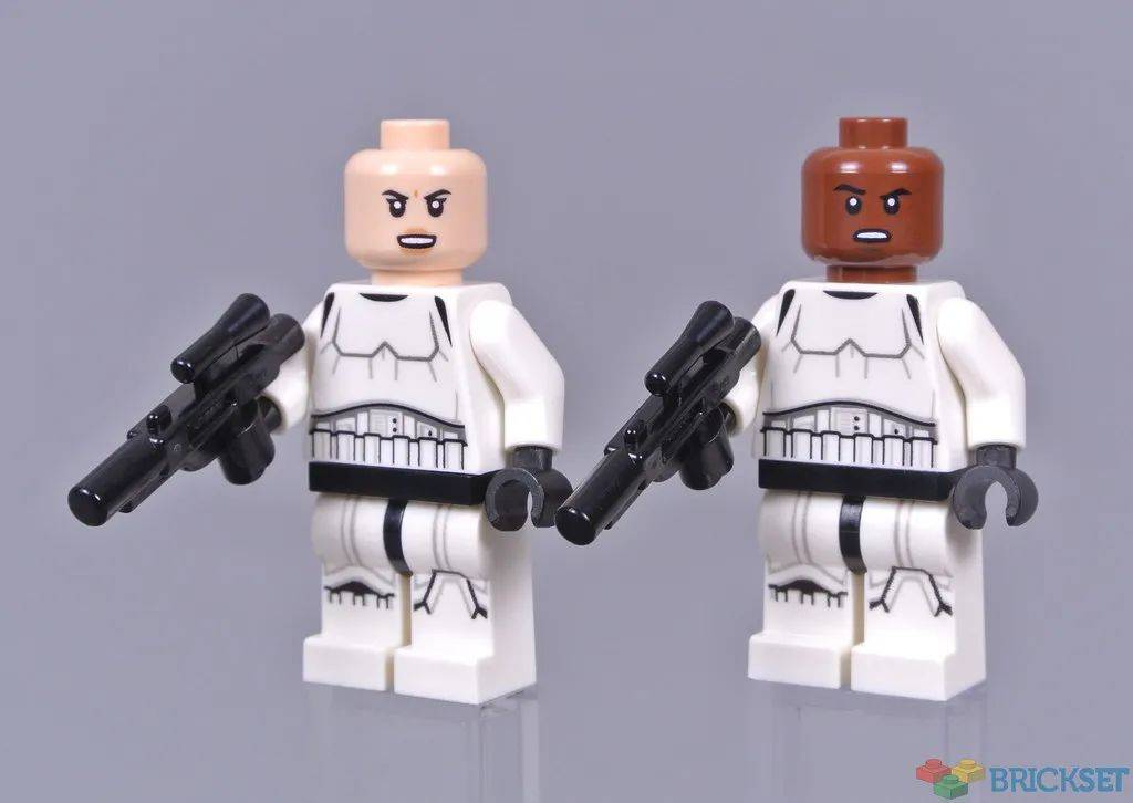 自2020年以来,冲锋队员的头盔下出现了各种各样的头部,取代了之前使用的克隆人士兵的设计。值得注意的是,这里有两个全新的头部,看起来很生动,尤其是女冲锋队员看起来很有气势。这两个人仔都配备了爆能枪。