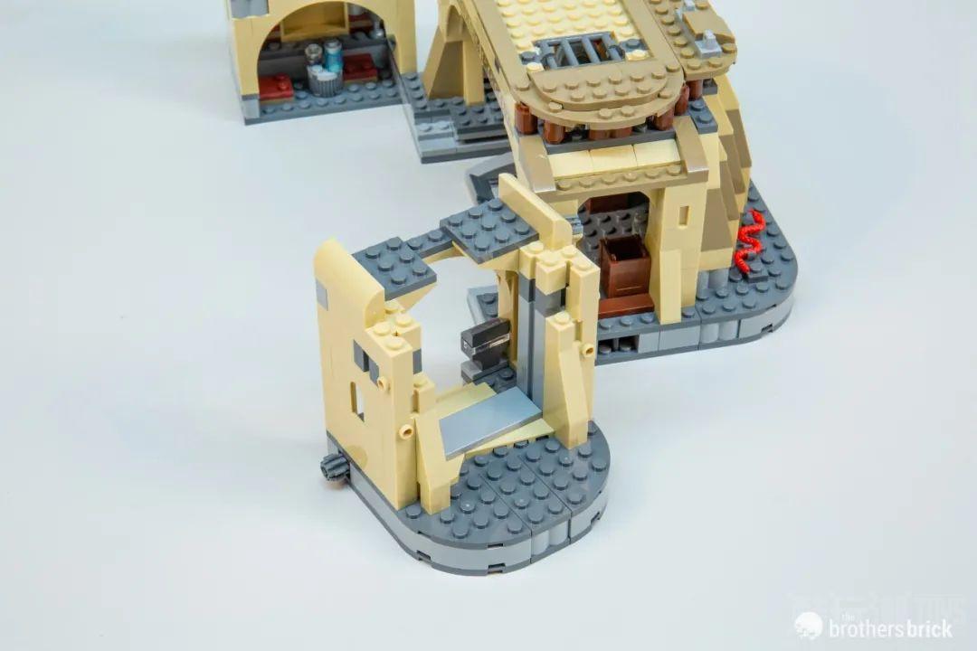 正如刚才提到的,波巴·费特的宫殿遵循了之前“贾巴宫殿”套装的基本设计模式和审美,特别是2012年发布的9516贾巴宫殿和2013年发布的75005兰克暗室,配色方案、一侧的高塔和弯曲的屋顶弧线都有相似之处。