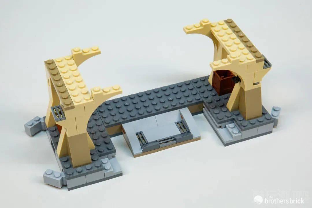 大型王座的中心部分位于一个可移动的区域,能够插入到宫殿的主体中。虽然半圆形的贴纸确实为王座增添了一些细节,但大部分细节都是用砖块拼出来的。