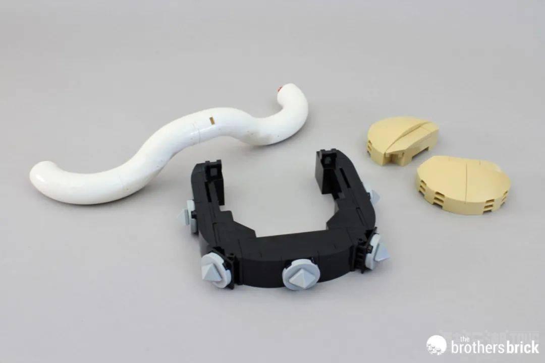 由绿色圆盘,3×3锥形零件和楔形砖,加上厚重的铰链,让外壳的曲线看上去更加圆润,如果你想拼搭一条巨龙的话,这个拼搭方式我觉得是你可以进行借鉴的。