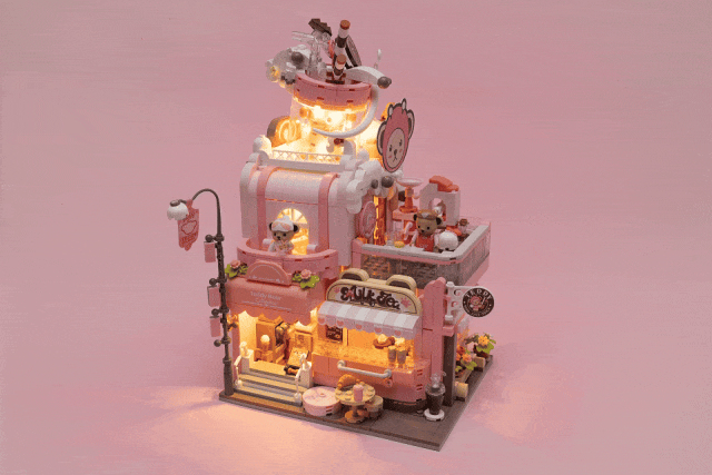 - 可爱图案如甜甜圈、瑞士卷、熊熊招牌等让积木建筑瞬间生动,更有代入感。