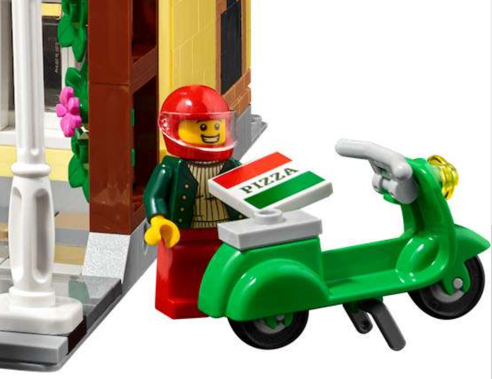 爵士俱乐部旁边的披萨店使用了12格颗粒的宽度,既然划分为两栋建筑但没有像10218宠物店和10270书店一样设计成2栋可拆分开的16*32的建筑,Anderson表示是因为现在10270 书店还没有停产,想将爵士乐俱乐部与书店做的有明显的区别划分。