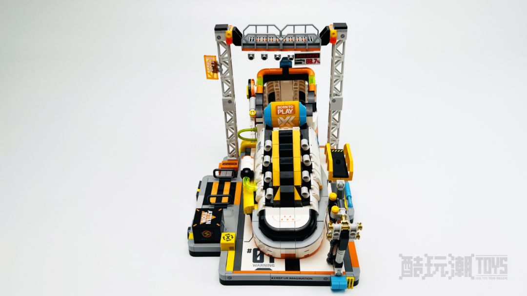 将我们刚才拼搭好的鞋放在底座上,整体的拼搭就完成了。潮鞋基站的设计很有创意,配色也很丰富,印刷件与高质量的贴纸为其增加了许多细节。看到成品终于明白了为什么很多人都在说这件套装是赛博朋克的风格,科技潮流感真的很强。