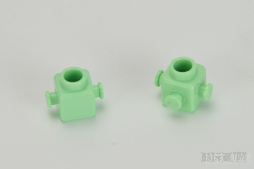 先来初步了解一下布鲁可积木独特的拼搭方式。以方形侧面带凸点的砖块和侧面带凹槽的条状砖举例,二者通过凸点与凹槽实现侧面连接,在拼搭在底板这样的载物上时,它们俩有先后的拼搭顺序。这是我之前没体验过的全新拼搭方式,在积木零件的设计中融入了榫卯的特点,变得十分牢固。