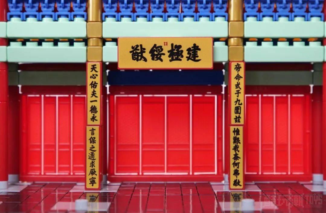 布鲁可太和殿的最佳观赏位置是高于你眼部一寸的距离,在这个角度可以看到更丰富的颜色搭配,完美还原的太和殿牌匾、造型复杂的斗拱、绚丽多彩的金龙和玺彩画都能纳入眼中。
