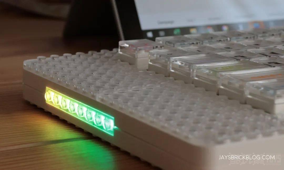 上面这张是对键帽的仔细观察。哦,我有没有提到您也可以自定义RGB,还可以用透明的乐高积木进行装饰?