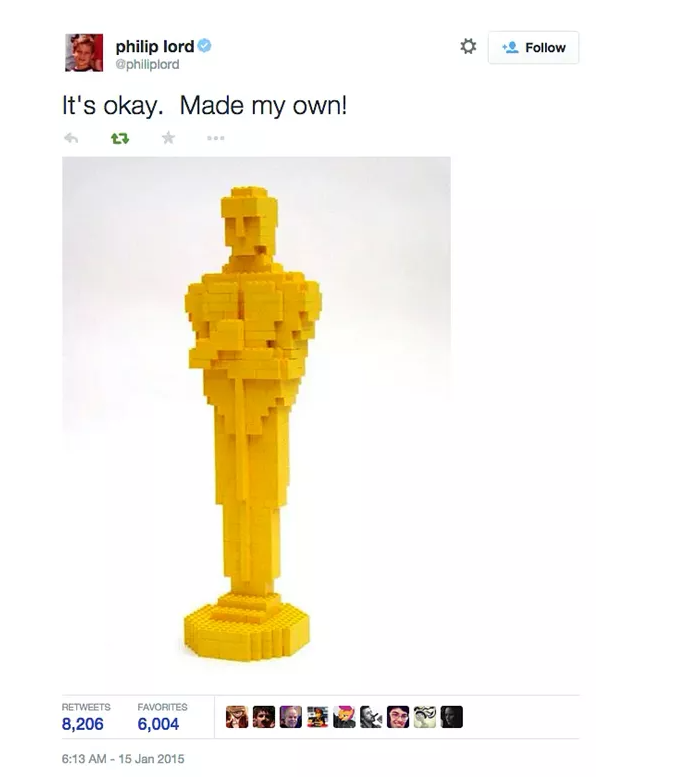 彩蛋:《乐高大电影》被超能陆战队击败,遗憾当年奥斯卡的最佳动画长片,因此制作团体非常暖心地用乐高积木给自己拼了一个现成的奖杯……