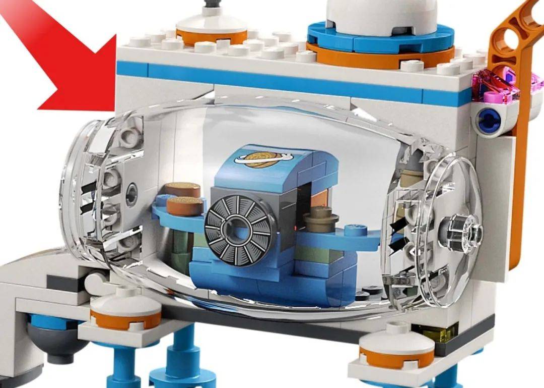 另一个新零件在80032嫦娥的月饼工厂中很醒目,6×10的座舱盖,首次以透明色出现。你还可以透过它看到新的1×1月饼图案光面板,以及月饼风格的经典太空标志贴纸。