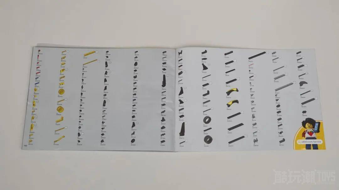 打开盒子,内部有四个带编号的袋子、一本说明书和一张贴纸。说明指出盒子里可能有纸袋版零件袋,但看起来塑料包裹的塑料袋将在2023年继续使用——Promobricks这一盒42151中使用的袋子都是塑料袋的。在说明书的最后,是我们都期待的一份零件清单。Promobricks还指出,有很多新形状的光面科技面板零件。