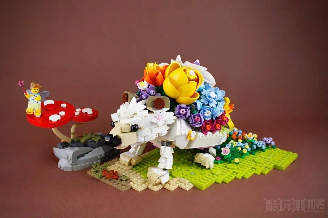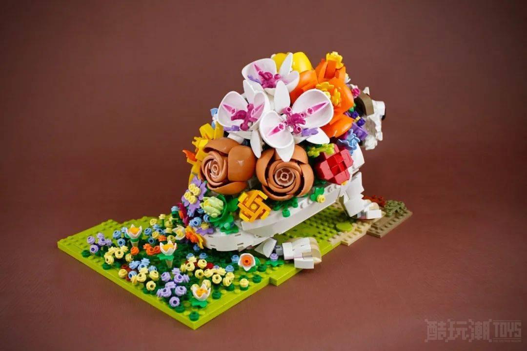 又是一个植物+动物的组合!Ian Hou重新利用了至少两份新野花花束套装中的几朵花来打造它,在翅膀上还有天堂鸟套装的叶子,棕色的树枝大部分来自2020年的盆景树。这两朵向日葵用来当眼睛真是再合适不过了!