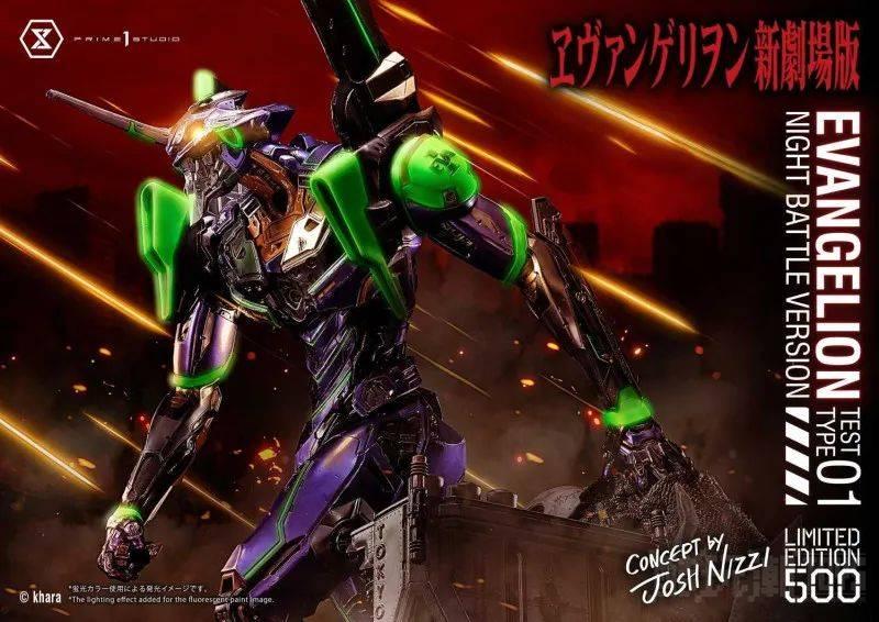 由全球知名、负责无数电影作品机械设计的概念艺术家 Josh Nizzi 担任设计,在初号机中融入风格强烈的机械结构,完整呈现令人震惊的细节。“汎用人型决战兵器 Evangelion 初号机 夜间战闘版”雕像,同样呈现出初号机右手持高振动粒子刀、左手拖著被打得血肉模糊的第四使徒的耸动场景,但本次换上了全新的厚重金属感涂装,营造出剧中夜间作战时令人印象深刻的色泽;绿色部分使用夜光涂料,让初号机能在黑暗中发出神秘萤光!让机械设计脱颖而出,展现独特的存在感。