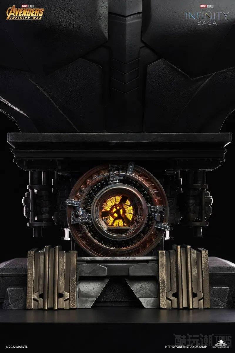 这一款以超高技术力展现“克里斯·海姆斯沃斯”面貌的“雷神索尔”胸像高度来到 82 公分,根据《无限战争》资料设定再现了他的俐落短发、胡子、位于右眼位置的伤痕,以及黑色主调盔甲、鲜红色斗篷,胸甲圆形盾片上的刻画、肩甲的战损痕迹都十分细緻,而异色双瞳的细节当然是没有放过!采用铂金硅胶(Platinum Silicone)为材质制作的皮肤更是展现出逼真的肤色红润感,底座部分是以矮人工匠所在地尼达维利尔(Nidavellier)的熔炉为题设计;从官图真的能感受到克里斯·汉斯沃的满满帅气,实在是太猛啦!