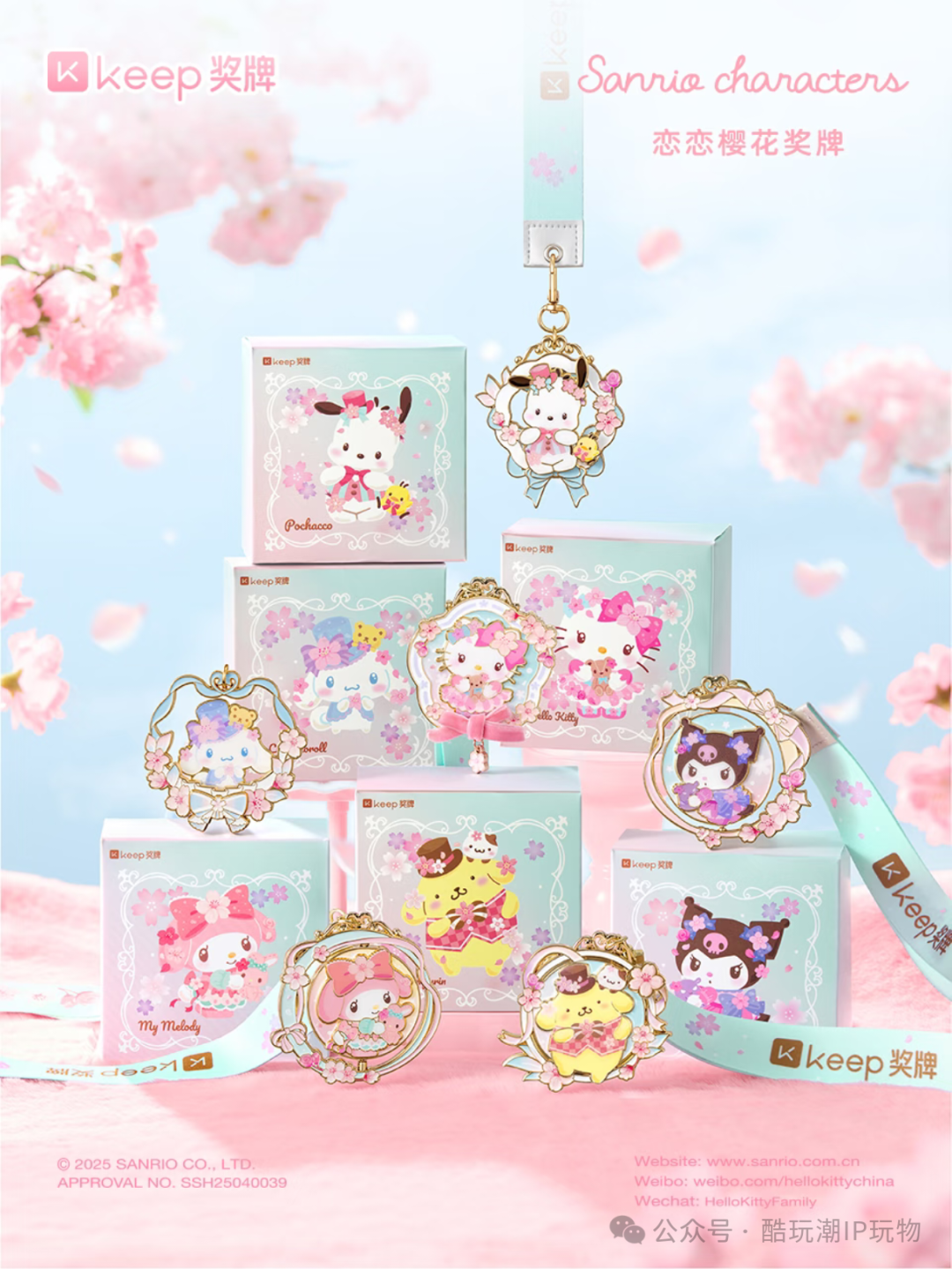 “和三丽鸥家族的小伙伴们相约去赏樱花,会是一种怎样的浪漫体验?恋恋樱花奖牌用蓝粉浪漫配色,勾勒清新春日氛围;春樱纷纷扬扬,奖牌粉嫩登场!”