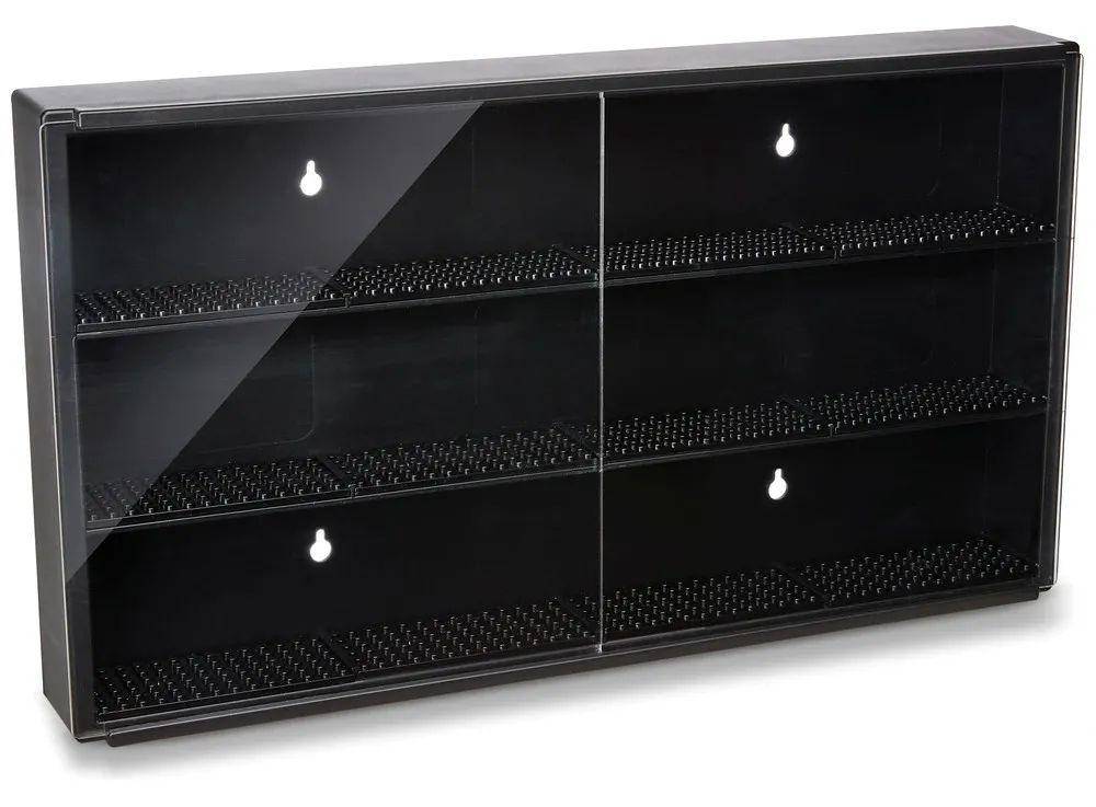 此款产品分为两个版本,两者正面都有一块透明亚克力板进行覆盖,以达到防尘的作用,同时背部预留了悬挂点,可以直接将展示柜挂在墙上。同时在展示柜内部配有LED灯带,由电池进行供电。