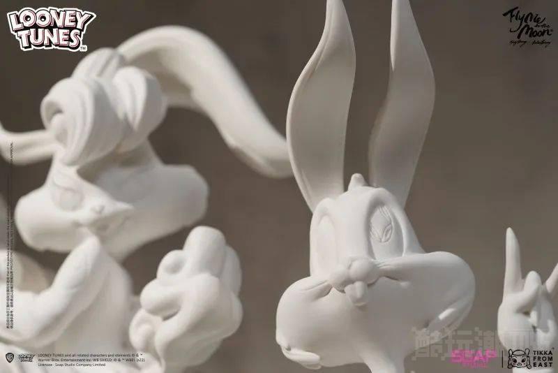 本次获得华纳官方授权、由 Tik Ka From East 重新诠释的「兔巴哥」与「萝拉兔」展现出仙风道骨的样貌,有种他们彷彿是由柔软云朵化身而成的视觉效果,在维持两位兔子角色造型轮廓的同时,注入饱含中华古风的细节,像是汉服、祥云、兔巴哥的特殊手势……等,整体虽然是以白色呈现,依旧有不少表现出层次感的细节刻画;值得一提的是,萝拉兔手里的月亮会在与兔巴哥合并(磁吸式)之后发出柔和的亮光,大大提升展示起来的飘然情境。