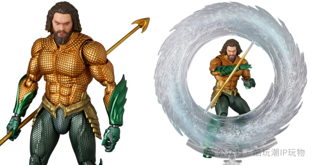 配件附有包含头发在水中飘逸的模样等三颗替换头雕、多组替换手、标志的武器三叉戟以及使用三叉戟卷起四周水花的特效配件。